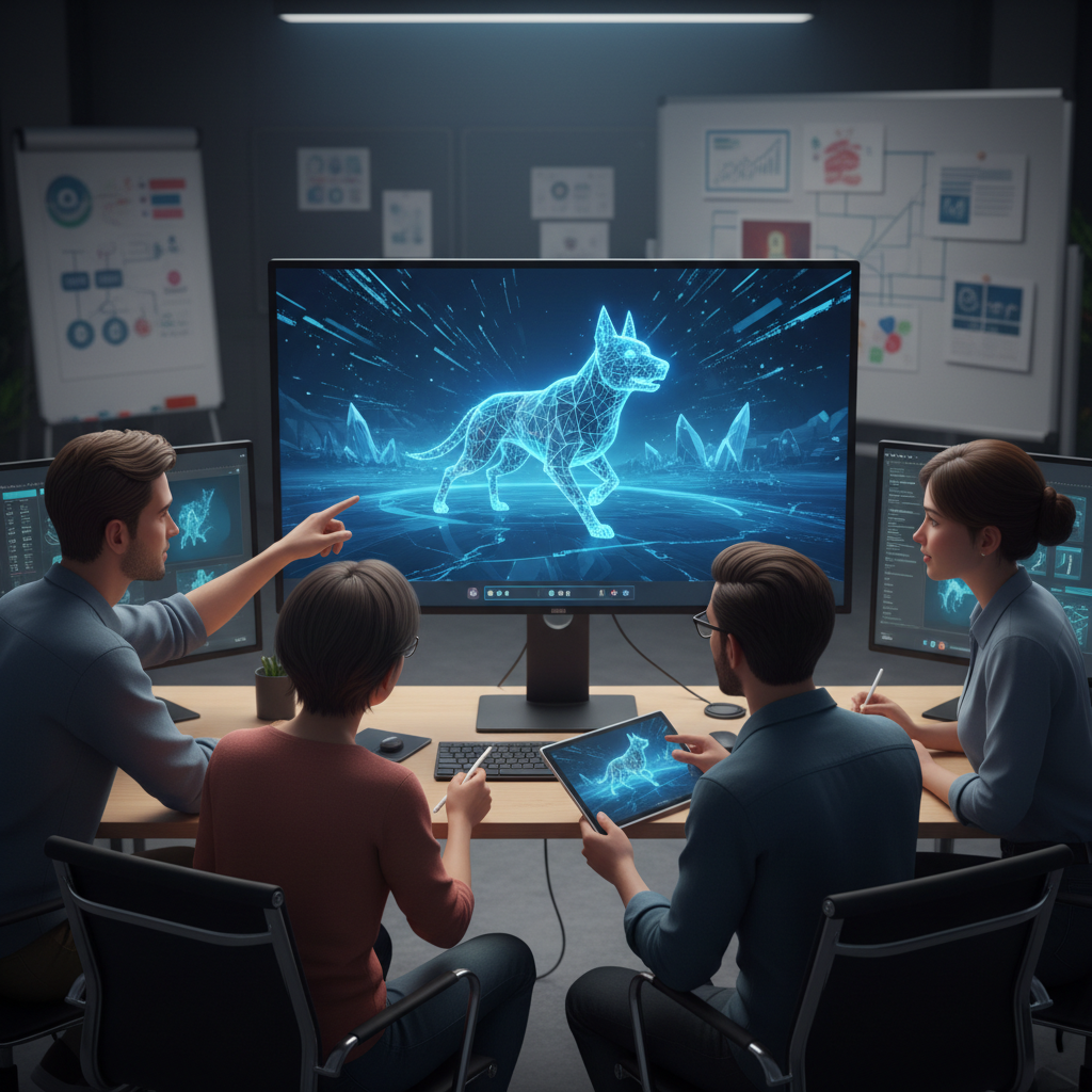 Ein Entwickler arbeitet an einer virtuellen Hund-App mit fortschrittlicher Animation.